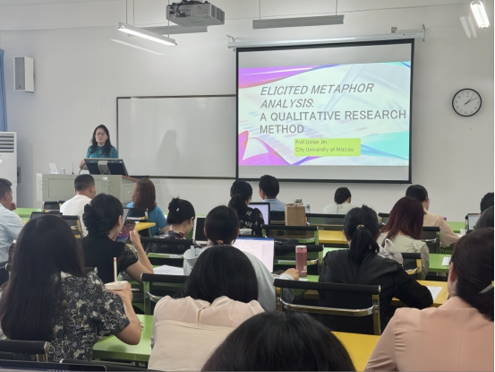 金立贤教授曾在英国高校工作23年,现任国际跨文化交流研究协会主席、澳门城市大学人文社会科学学院院长,并担任数个SSCI国际学术期刊编委和编审。她曾在英国、新加坡、马来西亚和中国领导国际科研团队,开展语言学、跨文化交流和质性研究方法等方面的研究,主持超过40项国际或国家资助研究项目;出版和发表学术书籍及文章200余篇/本;在超过250场国际或国家级会议上发表主旨演讲。她是“引导隐喻分析”质性研究方法(Elicited Metaphor Analysis)的创始人之一,对于这种质性研究方法具有深刻且权威的理解。此次讲座是其多年研究成果的一次深度分享。
