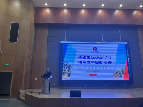 国际交流与教育学院李莹莹老师以《搭建国际交流平台,提高学生国际视野》为题,从我校国际化育人情况、国际合作交流项目、本硕直通班项目三个方面介绍了我校国际交流项目。学校国际化的特色定位、国际化人才培养的搭建体系,以及近年来我校国际育人的成果展示,以及本硕直通班的特色与优势,激发了同学们学好外语的热情。