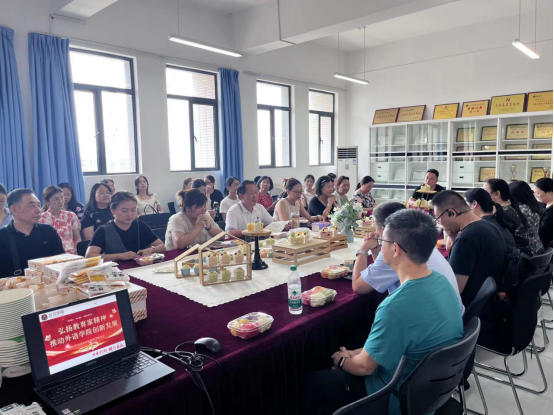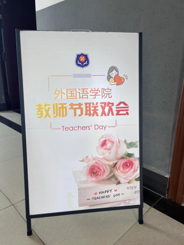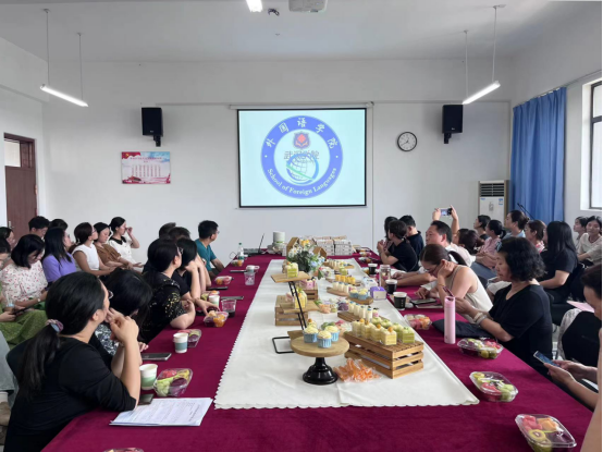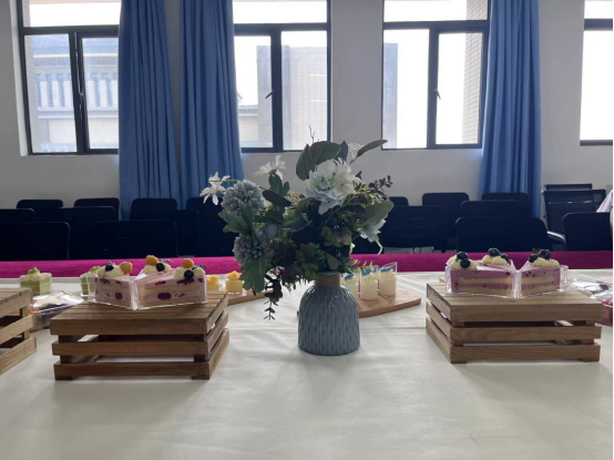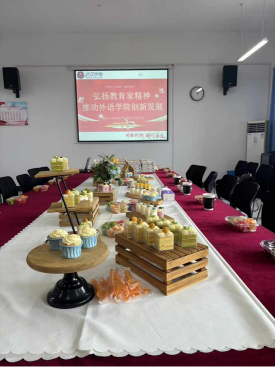 为营造浓厚的节日氛围,学院精心策划,253会议室被布置得温馨雅致,教师节主题宣传牌醒目而精美,桌上摆满了香气四溢的比萨、鲜甜的水果,冰镇咖啡和茶水,以及各式精致点心,为这场盛会增添了别样的色彩。庆祝活动在全院教师们的欢声笑语中拉开了序幕。