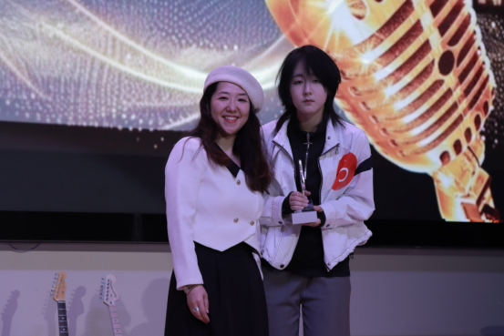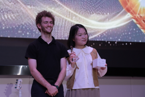 经过激烈的角逐,最终有5组选手脱颖而出,进入第二轮的比拼。选手们全情投入,在舞台上自信绽放,不仅展现了高超的演唱技巧和富有感染力的舞台表现,更彰显出扎实的英语功底。最终,4号选手曾嘉凭借出色的唱功、纯正的发音和富有感染力的舞台表现荣获本次大赛的冠军,9号选手包玉雯获得亚军,10号选手李胜楠获得季军。“最受观众欢迎奖”由1号选手刘仔辰摘得。