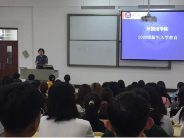 十大赌博正规网址排名院长曹曼致辞。曹曼对2020级新生加入到十大赌博正规网址排名十大赌博正规网址排名这个大家庭表示热烈的欢迎,2020级新生注定是不平凡的一代,生于非典,战于新冠,对于同学们在新冠疫情特殊时期,通过自己的坚持不懈的努力顺利考入大学所作出的努力给予了高度的肯定,勉励同学们在人生阶段的另一个起点,珍惜时光,继续努力。曹曼从办学历史、校园文化、人才培养、专业设置、师资力量、历届学生取得的成绩等方面全面介绍了学校和十大赌博正规网址排名,重点和新同学分享了英语作为一门通识教育,对在学生未来发展的作用,使学生对英语这门学科有了更加清晰的认识,坚定了要学好英语的信心。曹曼对新生提出希冀:我们外语人要具有中国情怀和世界眼光,为此,希望2020级的新同学步在入新的人生起点时,要志存高远,制定新的目标和人生规划,多读书,学会学习,并通过分享英语成语stand in one's shoes,要求同学们关爱他人,学会沟通,充实而又愉快地渡过大学时光。最后曹曼将“雄关漫道真如铁,而今迈步从头越”送给每一位新同学,以此勉励同学们新起点,新目标,砥砺前行。