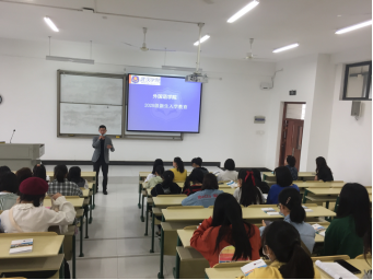 商务英语系主任蓝建青,英语系基础英语教研室主任分别进行了专业介绍。两位老师从什么是英语专业、什么是商务英语专业入手,分别介绍了英语专业、商务专业的学科特点,专业设置,主干课程、专业培养目标、师资力量、实践教学平台等,两位老师还引导同学们如何进行大学四年的学习,鼓励同学们要积极参加课堂教学活动,努力培养自己对专业的兴趣,积极参加各种学科竞赛、参加各类通级、证书考试、积极参加学者讲座、经验交流、文艺表演、体育比赛等,全面提升自己的能力和素质。