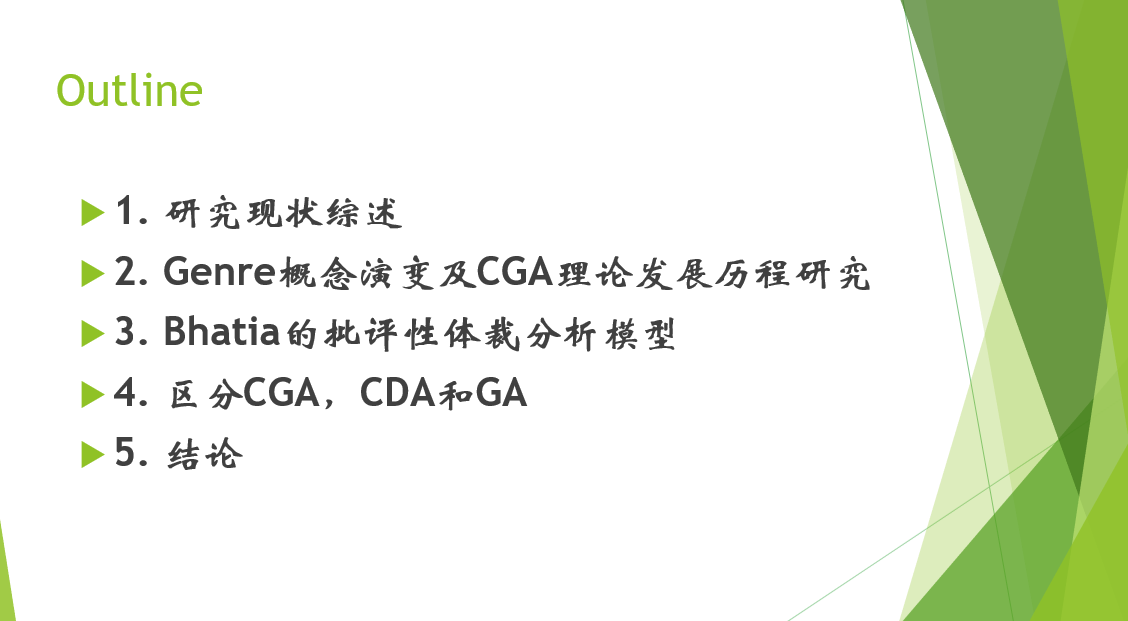 在介绍完基本内容之后,孙老师就CGA和CDA进行了比较分析。相比较CGA,批判性话语分析即CDA更为大家所熟悉,两者只有一个单词的差异,但是两者分析的视角和方法都存在一些差异。CGA是话语分析的方法,CDA是话语分析的视角,CDA主要通过话语审视社会,揭示话语中隐含的意识形态,并披露社会关系和社会结构中的不平等现象,并试图改变甚至消除这些不平等。而CGA则是通过体裁这一媒介来解释专业实践,关注专业实践中体裁运用的显性和隐性含义,目的不是要改变专业实践,而是理解并阐释专业实践,理解专业人士如何运用话语资源来实现其专业目的的。因此两者虽然都有批评一词,但是含义不同。