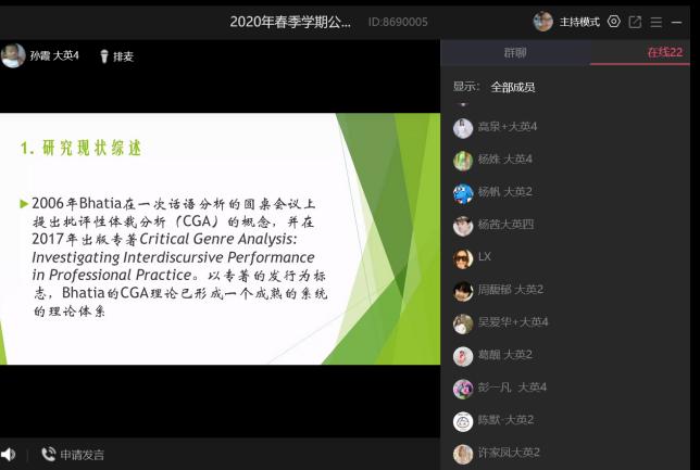 2020年6月23日,十大赌博正规网址排名公共外语课部举行了科研工作坊。此次工作坊上,孙霞老师做了题为“批评性体裁分析”的研究报告。报告主要包括研究现状、概念演变和理论发展,CGA分析模型以及CGA理论和CDA,GA的区别分析等内容。