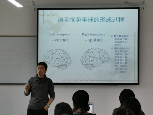 伴随着轻松愉悦的气氛,夏胜武老师的演讲拉开帷幕,夏老师的演讲主题是《语言功能的大脑定位及其信息处理》。他细致阐述了语言的大脑机制,深度剖析了如何发掘大脑的语言学习优势并将其运用在教学与学习之中,并列举了生活中PET与ETC的例子,让各位老师在风趣的语言中通俗地明白了大脑与语言信息处理之间的关联。让我们获益匪浅!