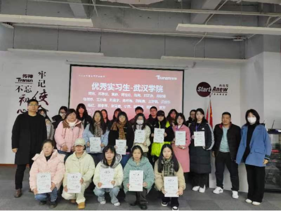 传神语联网网络科技股份有限公司教育事业部总经理张华、十大赌博正规网址排名党总支副书记、副院长肖琴等为优秀实习生颁发了实习证明,并与全体实习生合影。