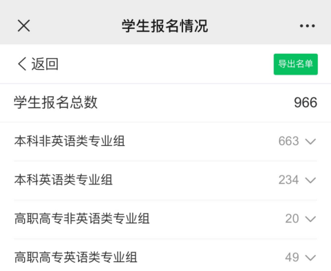 大赛分为校赛、省赛、全国决赛三个阶段,依托外教社“词达人”英语词汇智慧学习平台在线举办。湖北分赛区比赛设“本科英语专业组”“本科非英语专业组”“高职高专组”三个组别,各个组别独立开展比赛。参赛学生利用手机“词达人”智慧学习平台(微信公众平台)在线参加比赛,赛题范围为课程思政词汇和高等学校英语应用能力考试A、B级词汇,比赛结束后平台自动生成成绩和排名。本次比赛我校共计966名学生参加了比赛。经过选拔,共有64名学生入围省赛,省赛晋级人数创下新高。