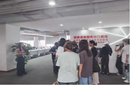 当日下午,组织学生前往传神语联网网络科技有限公司参观。公司教育部负责人向袁媛老师带领大家参观了大学生创新创业孵化区,并就公司的最新技术业务进行了精彩演讲。向老师对翻译行业的一些具体业务操作进行了详细介绍,包括公司翻译平台下单的具体流程、接单后稿件的处理、系统派单后AI机器寻找合适译员的标准等。大家还现场扫码体验了一款多语种同声传译的软件,其反应速度之快、翻译之准确让同学们感到震撼。