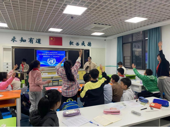 小队员们的热情呼应让王瑶琴十分惊喜。执训结束后,她注意到课堂上要全面调动队员们的积极性,才能让他们更好地参与、投入课堂中。在第二天南湖校区执训中,王瑶琴在课堂上鼓励他们多参与到课堂活动中,得到了不错的回应。时间虽然短暂,但欢乐的氛围在教室中不断传递。“实景模拟系列收获了不错的课堂效果,相信小队员们在课堂中过了一把当‘外交官’的瘾,我也相信这也会让小队员们的外交官梦生根发芽。”王瑶琴表示。
