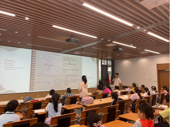 本堂课在小队员们的欢声笑语中迎来帷幕,主教官丁嘉伟和助教邹玉婷在授课过程中展现出的优秀专业素养获得了小队员们的一致好评。这次执训活动的圆满举行,不仅为“小小外交官--少年口译队”项目的不断推进奠定了基础,也锻炼了口译队队员们的教学和实际应用能力,是一次独特的社会实践活动。