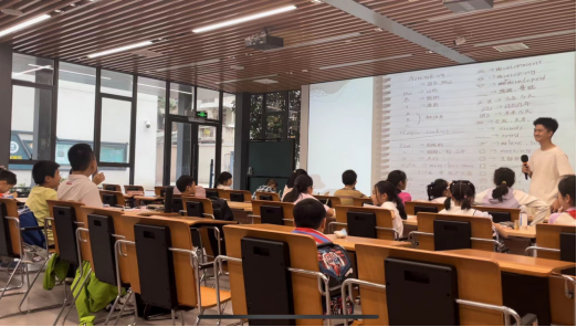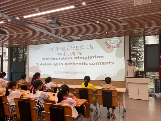 在开启教学活动前,丁嘉伟给小队员们进行了幽默风趣的自我介绍,活跃了课堂的氛围,并对整堂课的教学内容进行了总体的介绍。他结合自身的口译学习经验与小队员们进行了探讨交流。
