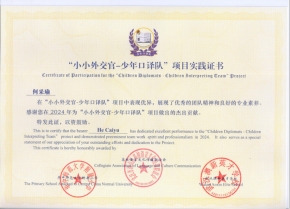 我校口译队丁嘉伟、邹玉婷、洪雪珂等6名队员参与了本学期的执训任务,校方与学生对队员执训表现表示充分肯定,口译队队长王壹涵与副队长何采瑜在项目前期打牢基础,中期表现优异,获得加盖三方公章的项目实践证书。