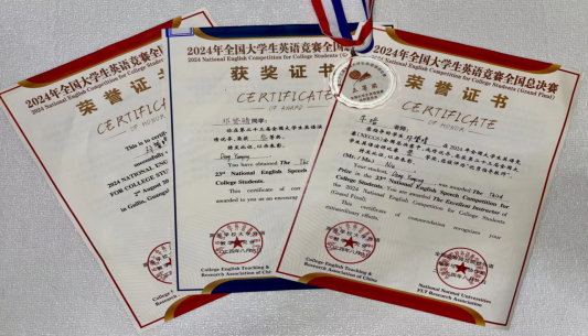 2024年全国大学生英语竞赛(NECCS)全国总决赛于8月2日—7日在广西桂林圆满落幕。经过激烈角逐,我校会计学2304班的杨思雨同学和英语2101班的邓赟晴同学分别荣获演讲比赛的二等奖和三等奖。