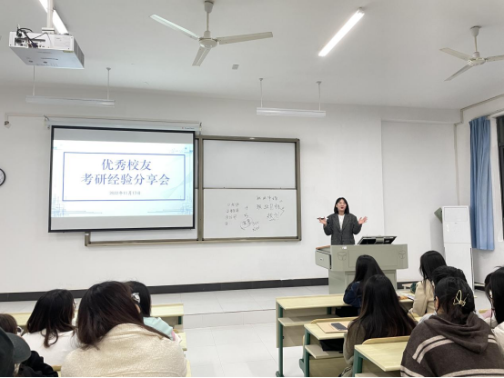 最后的现场答疑环节,同学们针对三位学姐的分享和自己在考研方面的问题,积极主动地向学姐们提出自己的疑惑,如自己目前的水平如何选择院校,怎样获取详尽的目标院校与专业信息、如何更好地规划考研时间,考研上岸后的真实感受等,都得到了耐心的解答。